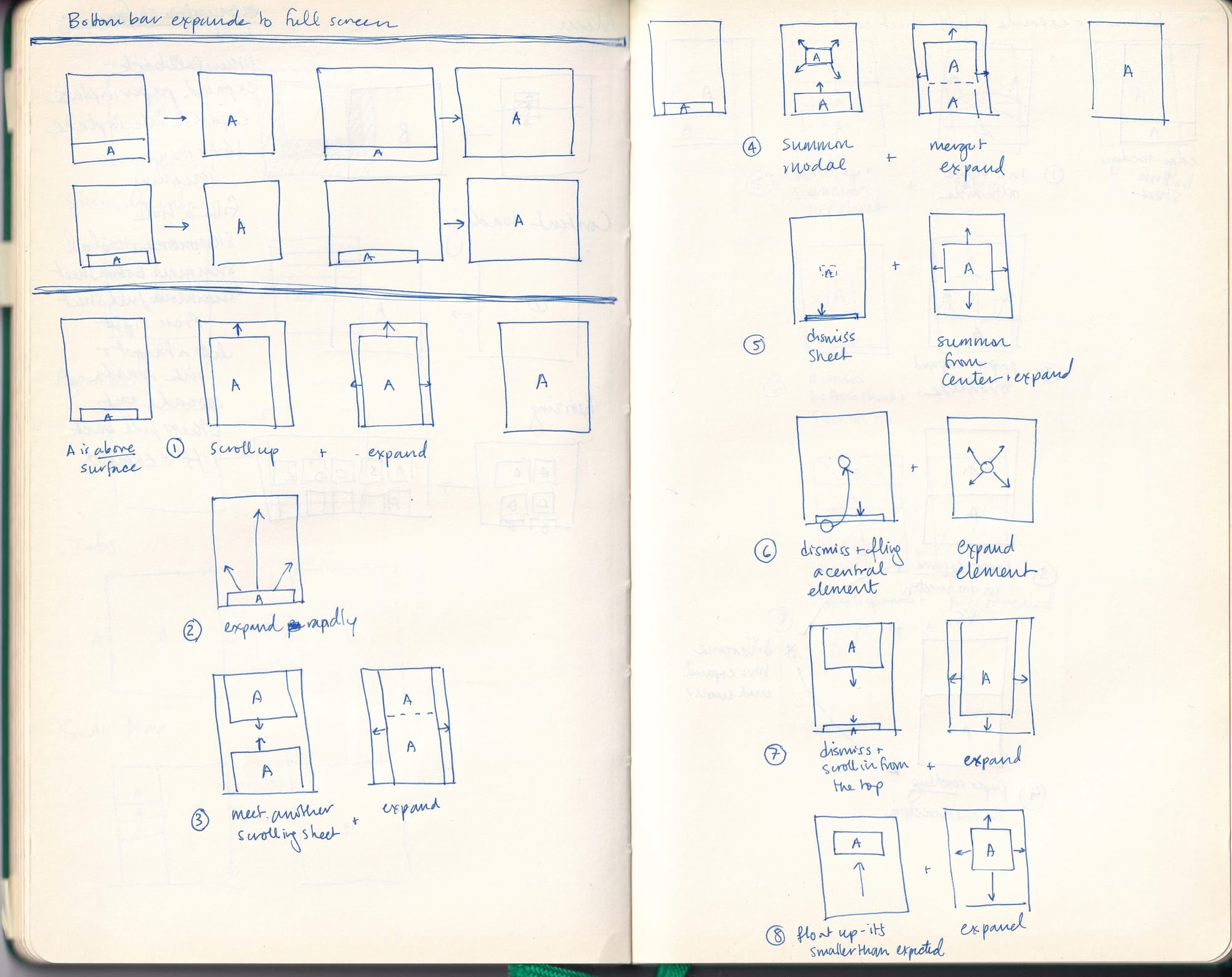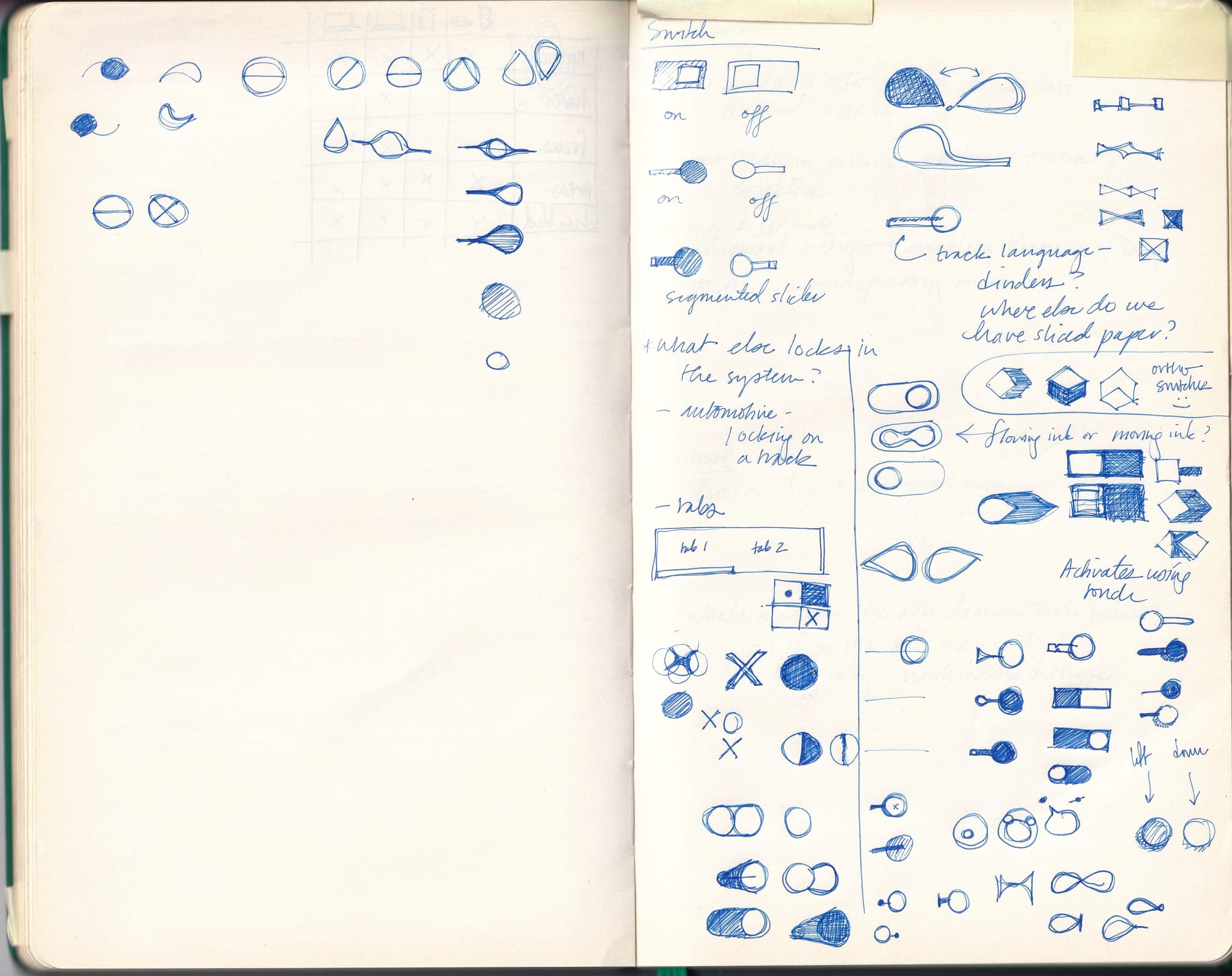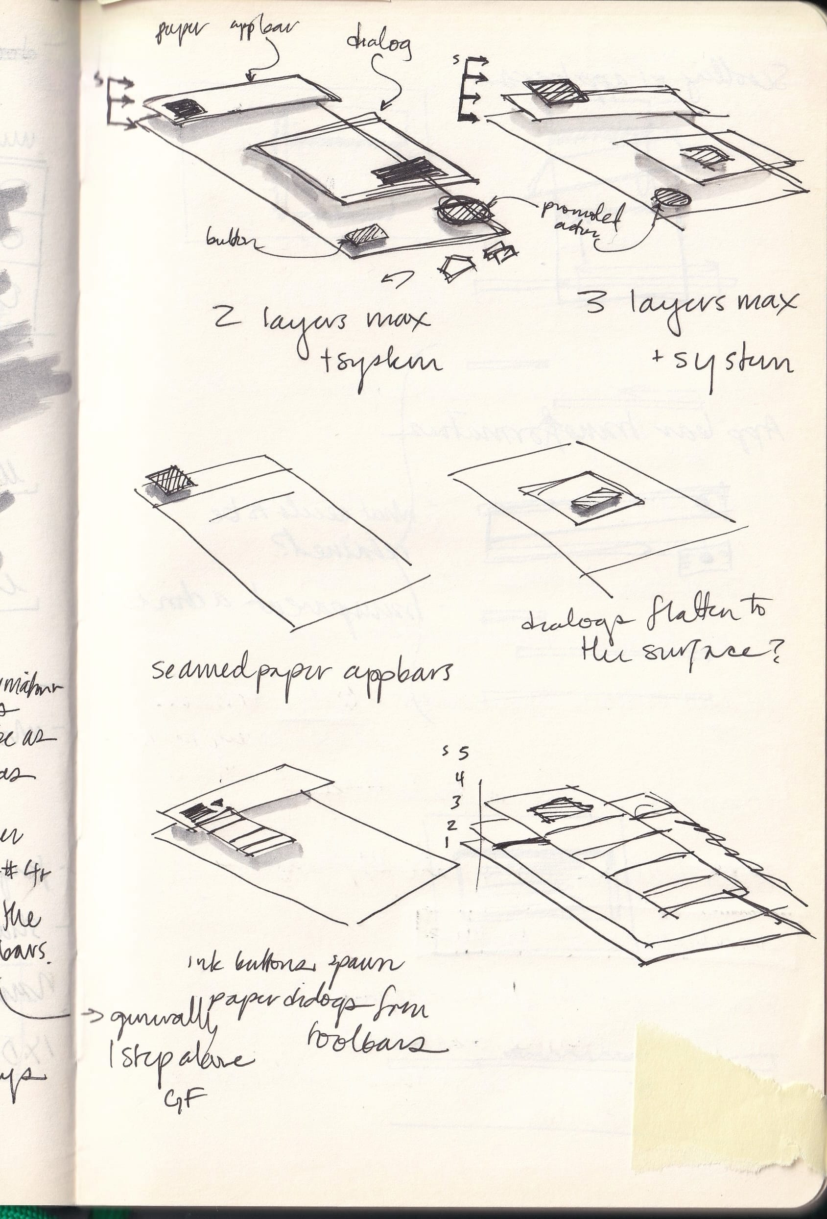 Pages from Fong's notebook while working on the first set of Material components