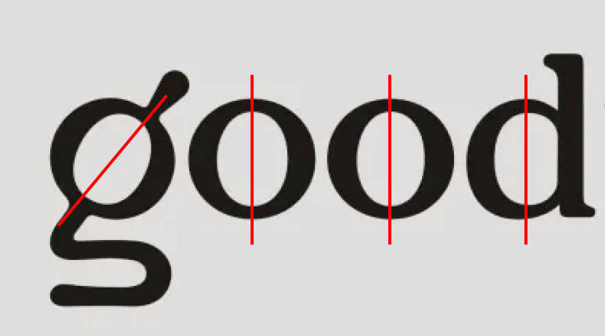 But this works in conjunction with the orientation of the bowl itself. Here, the contrast model of the logo face is broken. While all other models have an upright (or “expansion”) contrast model, the g uses a tilted (or broad-nib) contrast model.